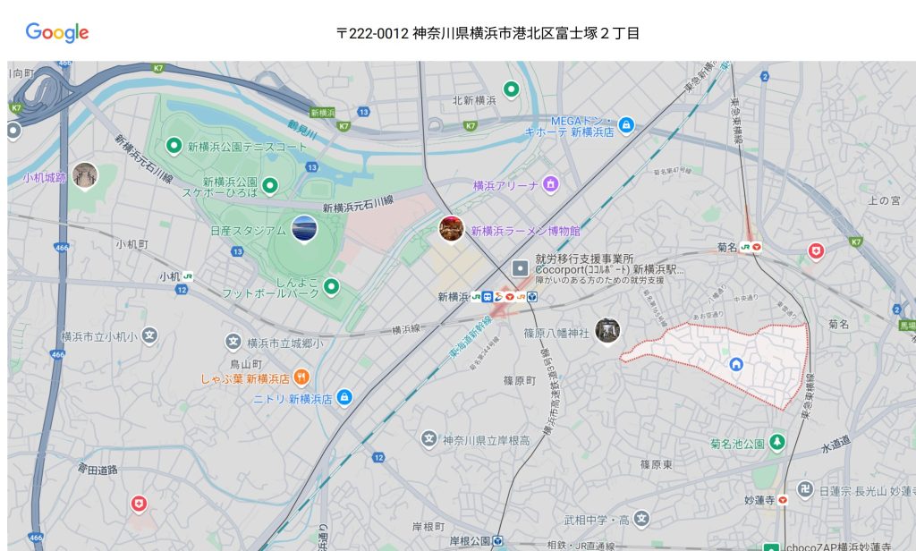 住 所 : 神奈川県横浜市港北区富士塚2丁目(赤線のエリア内)
